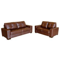 Jogo de Sofá 2 e 3 Lugares Sala de Estar Milão Couro Caramelo - Gran Belo