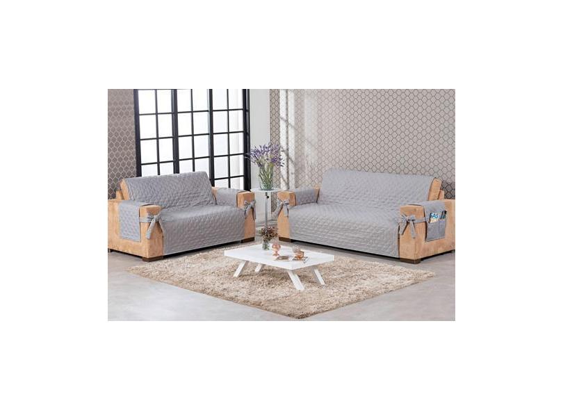 jogo de sofá 2 e 3 lugares tecido microfibra com laço cinza - BruceBab