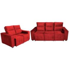 Jogo De Sofá Alfa 2 E 3 Lugares Retrátil Reclinável Vermelho Sofá Na