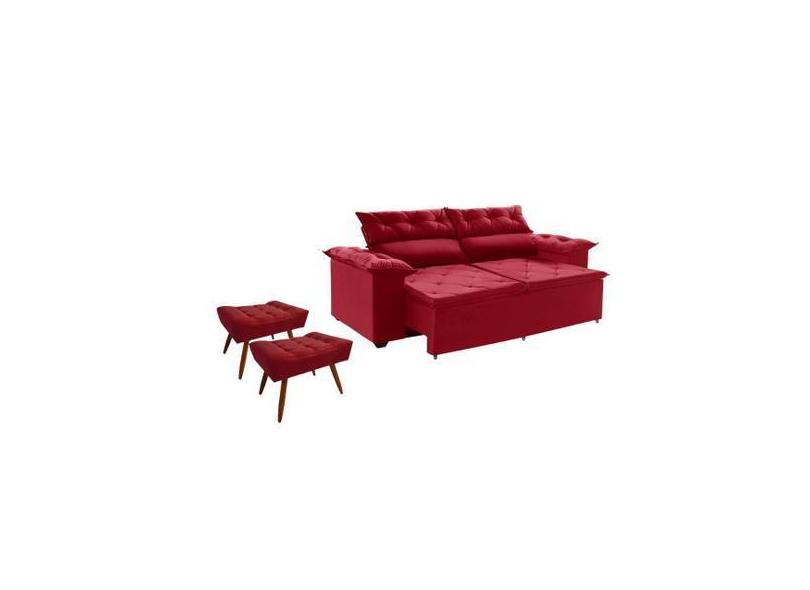 Jogo De Sofá Compact 200 Cm Retrátil Reclinável Molas Espirais + 2 Puf