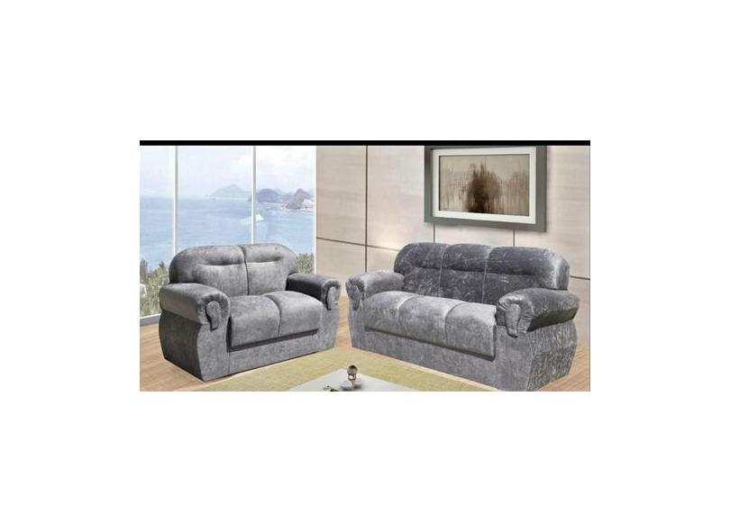 Jogo de Sofá de 2 e 3 Lugares Brasil/Viena Cinza Liso - G&J Estofados
