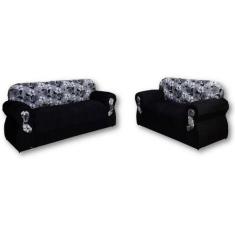 Jogo de Sofá de 2 e 3 Lugares Brasil/Viena Preto Floral - G&J Estofado