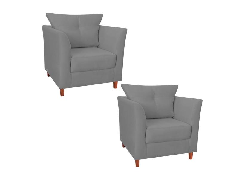 Kit 02 Poltrona Cadeira Sofá Decorativa Isis Sala Estar Salão Beleza Suede Cinza - LM DECOR