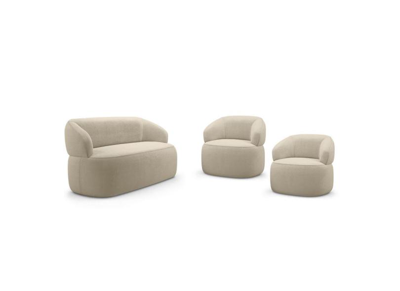 O menor preço encontrado no Brasil para Kit 02 Poltronas Giratória e 01 Sofá Orgânico Glee 03 Lugares 170cm Bouclê Bege - Desk Design atualmente é R$ 4.831,19.