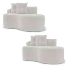 Kit 02 Sofás Orgânicos Living Bob 145cm 02 Lugares com 02 Almofadas Bouclê Off White - Desk Design