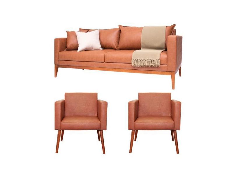 Kit 1 Sofá 3 Lugares E 2 Poltrona Conjunto Para Sala Recepção Escritór