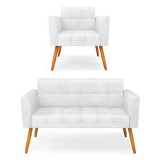 O menor preço encontrado no Brasil para Kit 1 Sofá Namoradeira E 1 Poltrona Elisa Corano Branco Pés Palito Castanho - D`rossi atualmente é R$ 1.357,46.