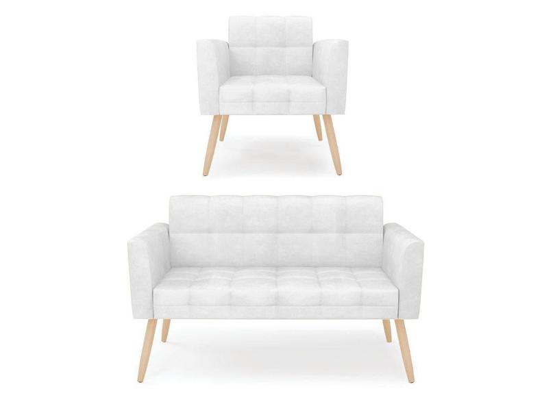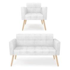 O menor preço encontrado no Brasil para Kit 1 Sofá Namoradeira E 1 Poltrona Elisa Corano Branco Pés Palito Natural - D`rossi atualmente é R$ 1.357,46.