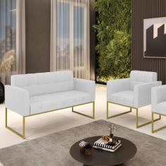 Kit 1 Sofá Namoradeira E 1 Poltrona Elisa Linho Cinza A05 Base Metálic
