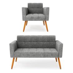 O menor preço encontrado no Brasil para Kit 1 Sofá Namoradeira E 1 Poltrona Elisa Linho Pés Palito Castanho - D`rossi Cor A26 Grafite atualmente é R$ 1.152,71.