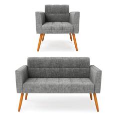 Kit 1 Sofá Namoradeira e 1 Poltrona Elisa Linho Pés Palito Castanho - D`Rossi