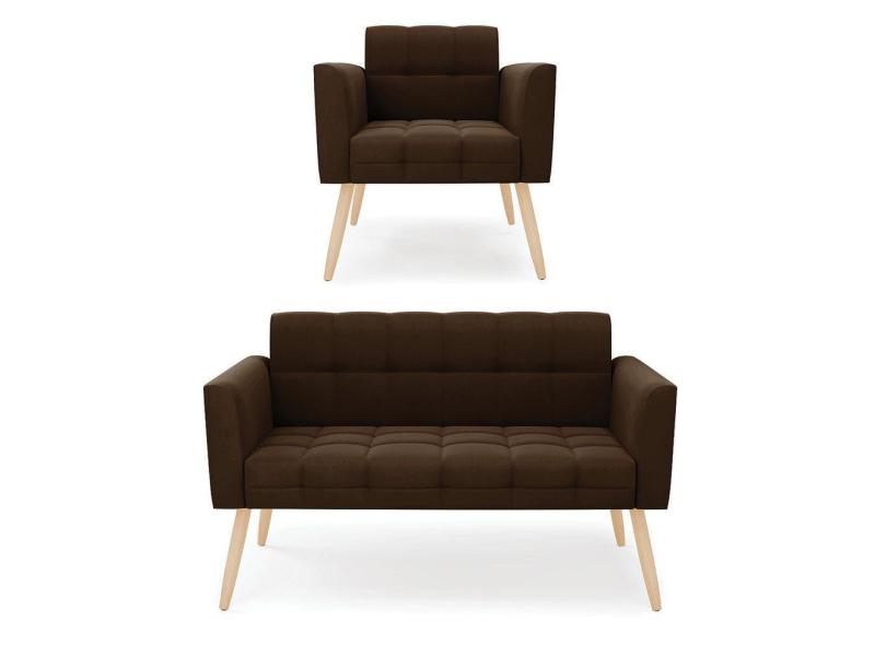 O menor preço encontrado no Brasil para Kit 1 Sofá Namoradeira e 1 Poltrona Elisa Suede Marrom Pés Palito Natural - D`Rossi atualmente é R$ 1.188,36.