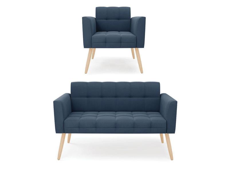 O menor preço encontrado no Brasil para Kit 1 Sofá Namoradeira E 1 Poltrona Elisa Suede Pés Palito Natural - D`rossi Cor Azul Marinho atualmente é R$ 1.125,81.