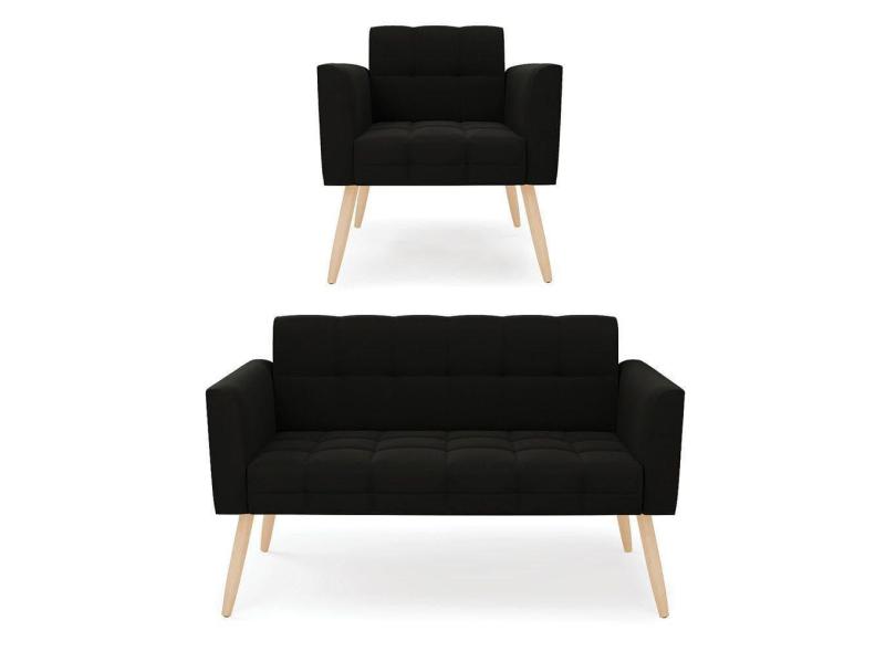 O menor preço encontrado no Brasil para Kit 1 Sofá Namoradeira E 1 Poltrona Elisa Suede Preto Pés Palito Natural - D`rossi atualmente é R$ 1.125,81.