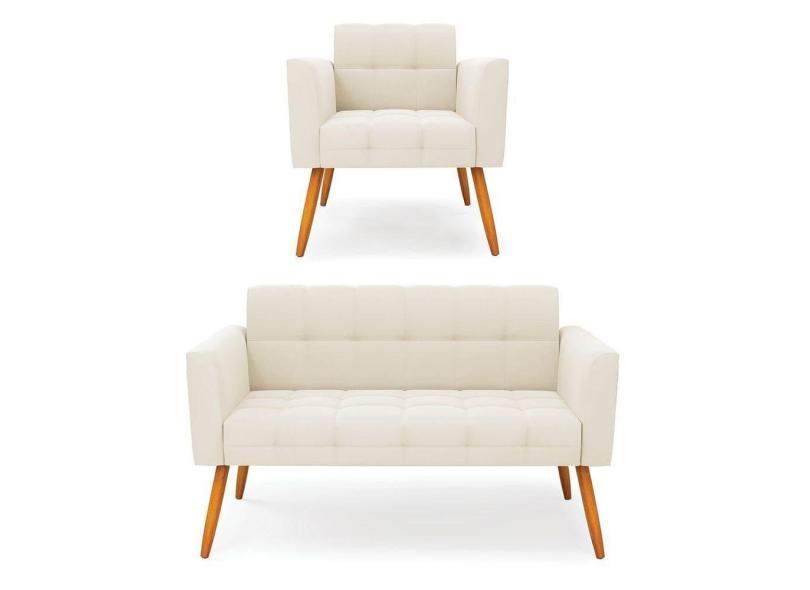 O menor preço encontrado no Brasil para Kit 1 Sofá Namoradeira E 1 Poltrona Elisa Veludo Bege Pés Palito Castanho - D`rossi atualmente é R$ 1.244,40.