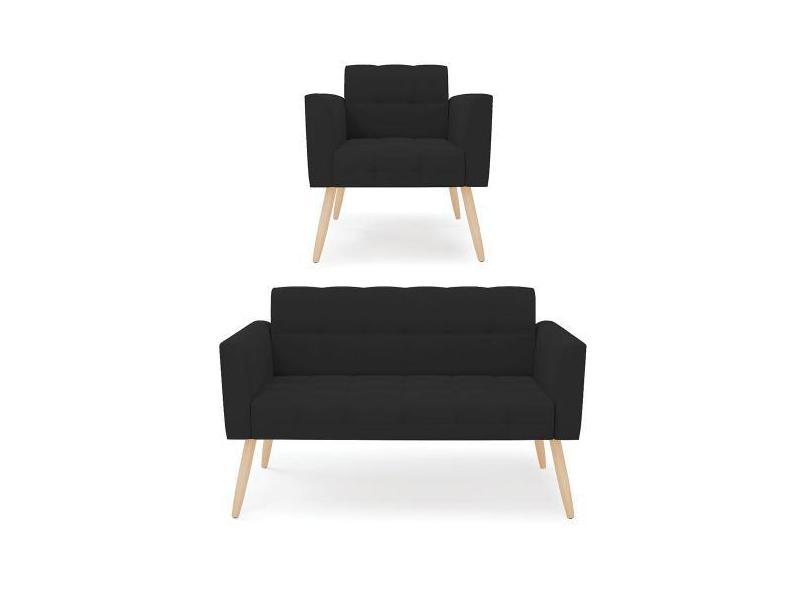 O menor preço encontrado no Brasil para Kit 1 Sofá Namoradeira e 1 Poltrona Elisa Veludo Preto Pés Palito Natu atualmente é R$ 1.126,51.