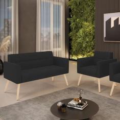 Kit 1 Sofá Namoradeira e 1 Poltrona Elisa Veludo Preto Pés Palito Natu