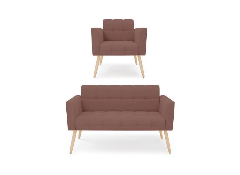O menor preço encontrado no Brasil para Kit 1 Sofá Namoradeira E 1 Poltrona Elisa Veludo Rosê Pés Palito Natur atualmente é R$ 1.126,51.