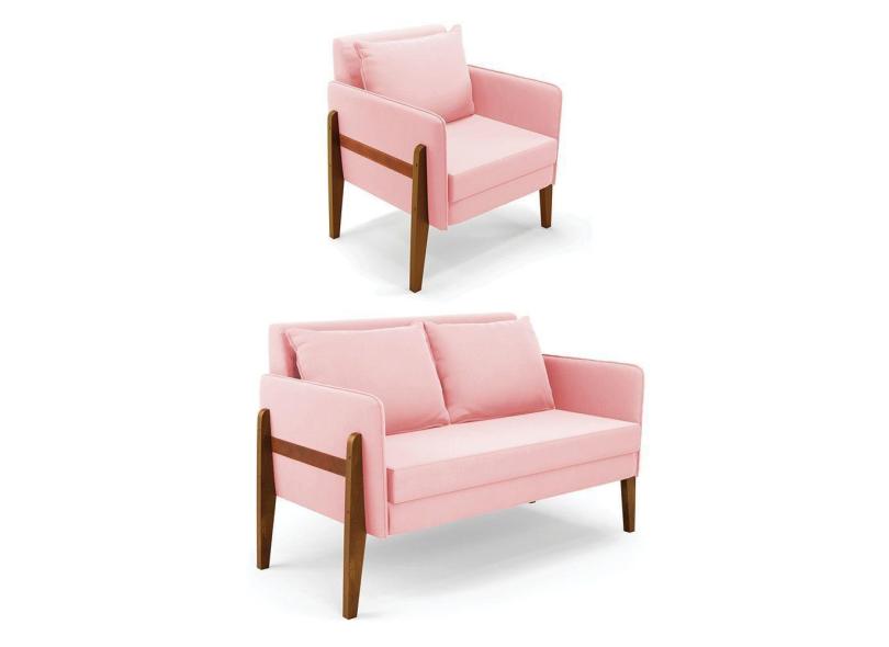 O menor preço encontrado no Brasil para Kit 1 Sofá Namoradeira E 1 Poltrona Lana Suede Rosa Bebê Base De Madeira - D`rossi atualmente é R$ 1.585,67.