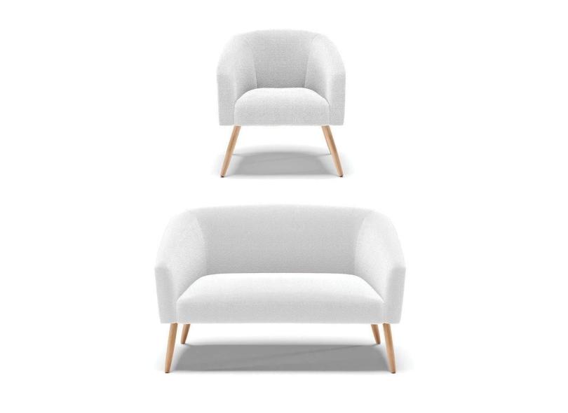 O menor preço encontrado no Brasil para Kit 1 Sofá Namoradeira E 1 Poltrona Stella Bouclê Off White Pés Palito Natural - D`rossi atualmente é R$ 1.369,80.