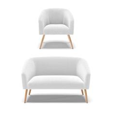 Kit 1 Sofá Namoradeira E 1 Poltrona Stella Bouclê Off White Pés Palito Natural - D`rossi