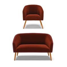O menor preço encontrado no Brasil para Kit 1 Sofá Namoradeira E 1 Poltrona Stella Bouclê Pés Palito Castanho - D`rossi Cor Terra atualmente é R$ 1.369,80.