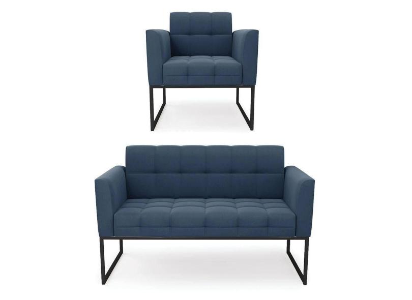 O menor preço encontrado no Brasil para Kit 1 Sofá Namoradeira E 1 Poltrona Suede Azul Marinho Base Metálica Industrial Preto - D`rossi atualmente é R$ 1.517,31.
