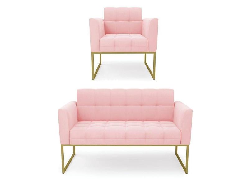 O menor preço encontrado no Brasil para Kit 1 Sofá Namoradeira E 1 Poltrona Suede Base Metálica Industrial Dourado - D\`rossi Cor Rosa Bebê atualmente é R$ 1.517,31.