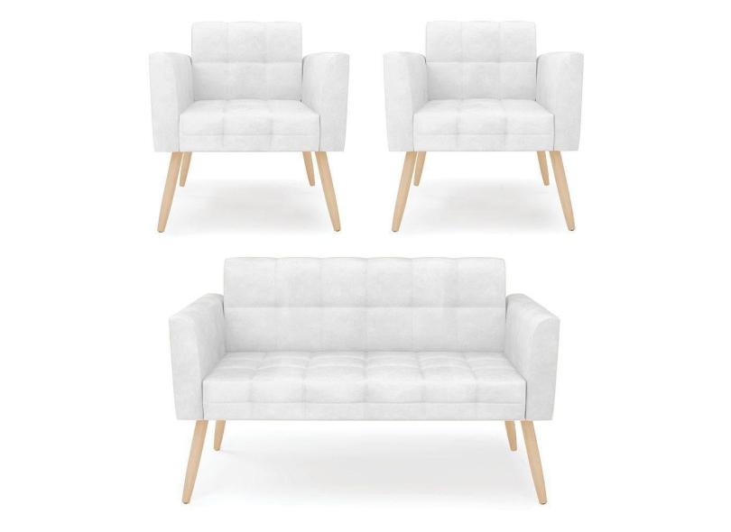 Kit 1 Sofá Namoradeira E 2 Poltronas Elisa Corano Pés Palito Natural - D`rossi Cor Branco