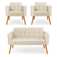 Kit 1 Sofá Namoradeira e 2 Poltronas Elisa Corino Pés Palito Castanho - D`Rossi