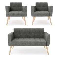 O menor preço encontrado no Brasil para Kit 1 Sofá Namoradeira E 2 Poltronas Elisa Linho Grafite A26 Pés Palito Natural - D`rossi atualmente é R$ 1.622,63.