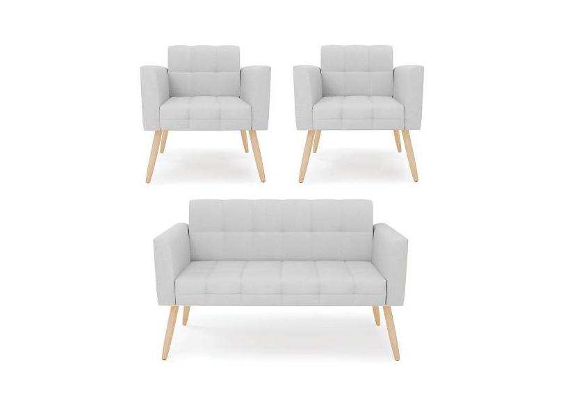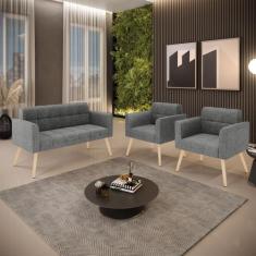 Kit 1 Sofá Namoradeira E 2 Poltronas Elisa Linho Pés Palito Natural -