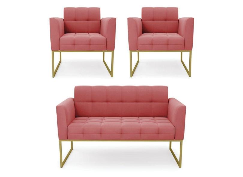 O menor preço encontrado no Brasil para Kit 1 Sofá Namoradeira E 2 Poltronas Elisa Suede Base Metálica Industrial Dourada D`rossi Cor Rose atualmente é R$ 2.131,11.
