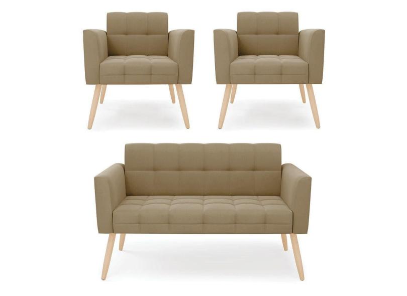 Kit 1 Sofá Namoradeira E 2 Poltronas Elisa Suede Marrom Rato Pés Palito Natural - D`rossi