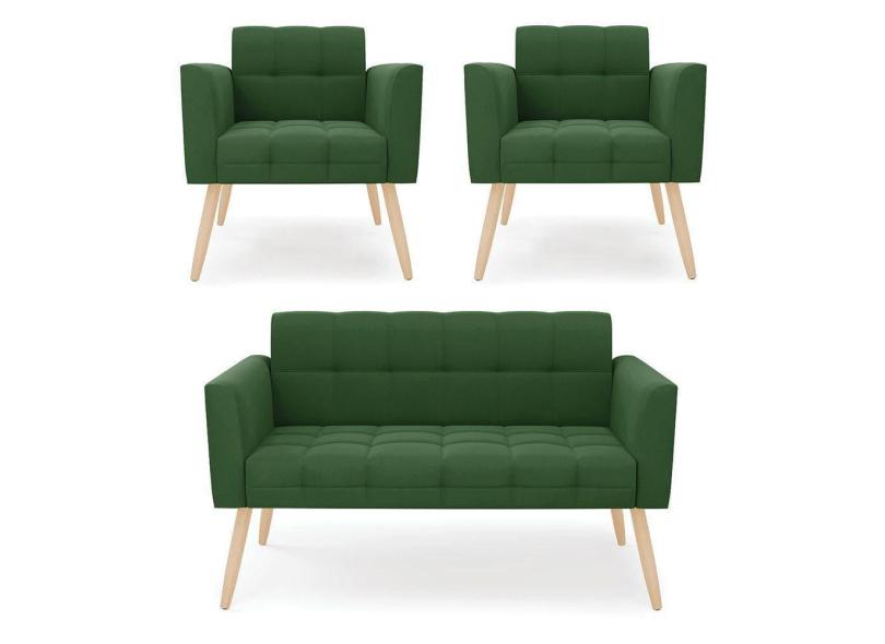 Kit 1 Sofá Namoradeira E 2 Poltronas Elisa Suede Verde Pés Palito Natural - D`rossi