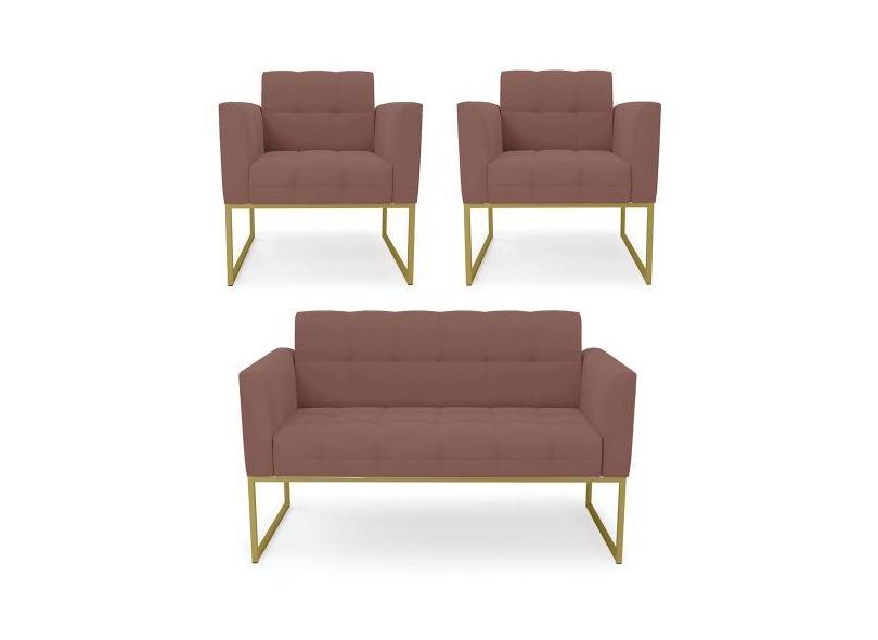 Kit 1 Sofá Namoradeira E 2 Poltronas Elisa Veludo Base Metálica Indust