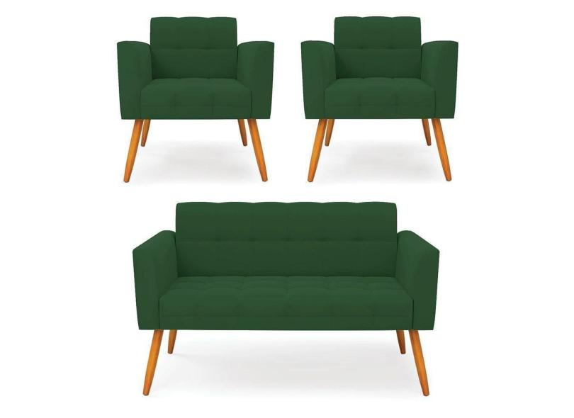 O menor preço encontrado no Brasil para Kit 1 Sofá Namoradeira E 2 Poltronas Elisa Veludo Pés Palito Castanho - D`rossi Cor Verde atualmente é R$ 1.659,51.