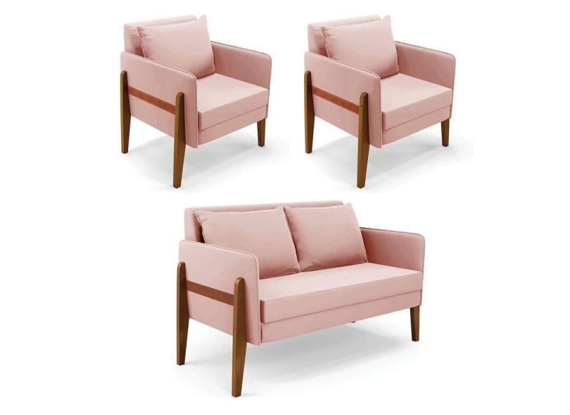 O menor preço encontrado no Brasil para Kit 1 Sofá Namoradeira E 2 Poltronas Lana Veludo Rosê Base De Madeira - D`rossi atualmente é R$ 2.804,90.