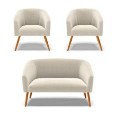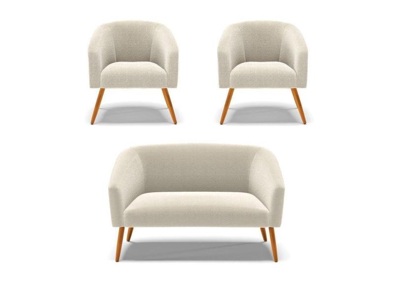 Kit 1 Sofá Namoradeira E 2 Poltronas Stella Bouclê Bege Pés Palito Castanho D`rossi