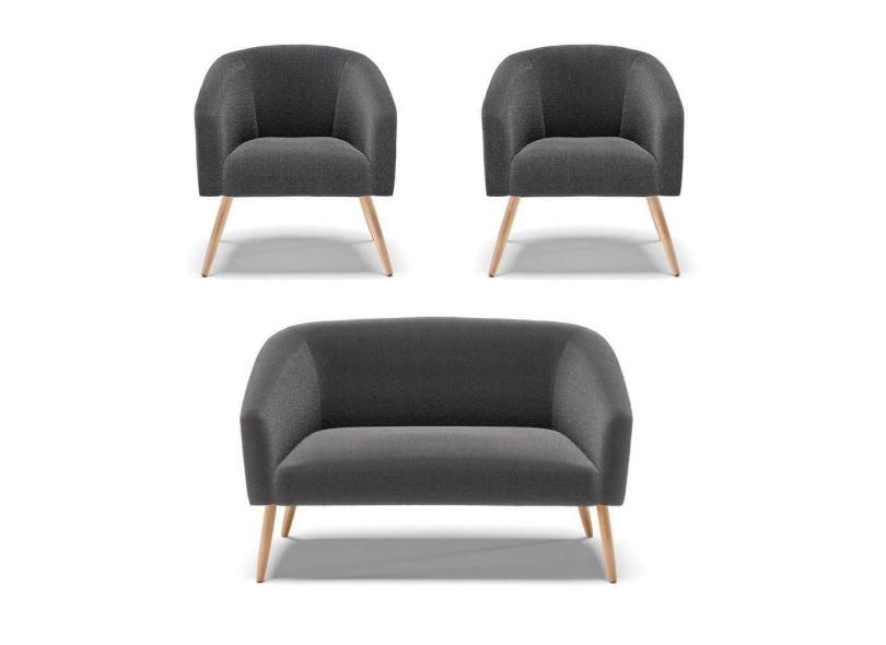 Kit 1 Sofá Namoradeira E 2 Poltronas Stella Bouclê Grafite Pés Palito Natural - D`rossi