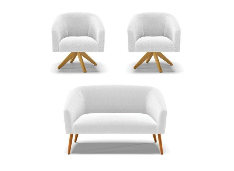 O menor preço encontrado no Brasil para Kit 1 Sofá Namoradeira E 2 Poltronas Stella Bouclê Off White Base De Madeira Ma30 - D`rossi atualmente é R$ 2.298,47.