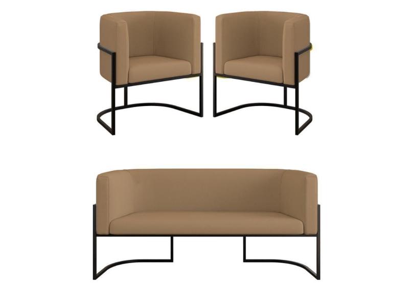O menor preço encontrado no Brasil para Kit 2 Cadeiras Poltronas + Sofá 2 Lugares Base De Metal Preto Veludo Capuccino atualmente é R$ 2.023,74.