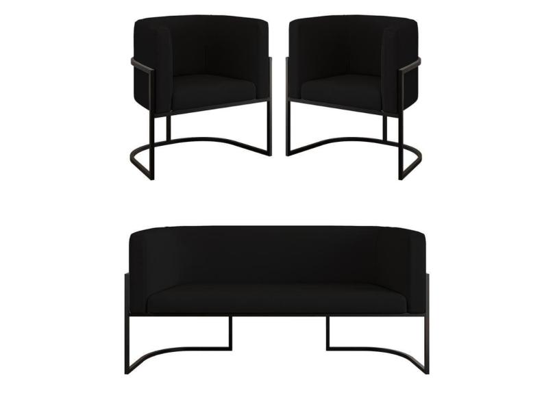 O menor preço encontrado no Brasil para Kit 2 Cadeiras Poltronas + Sofá 2 Lugares Base De Metal Preto Veludo Preto atualmente é R$ 2.023,74.