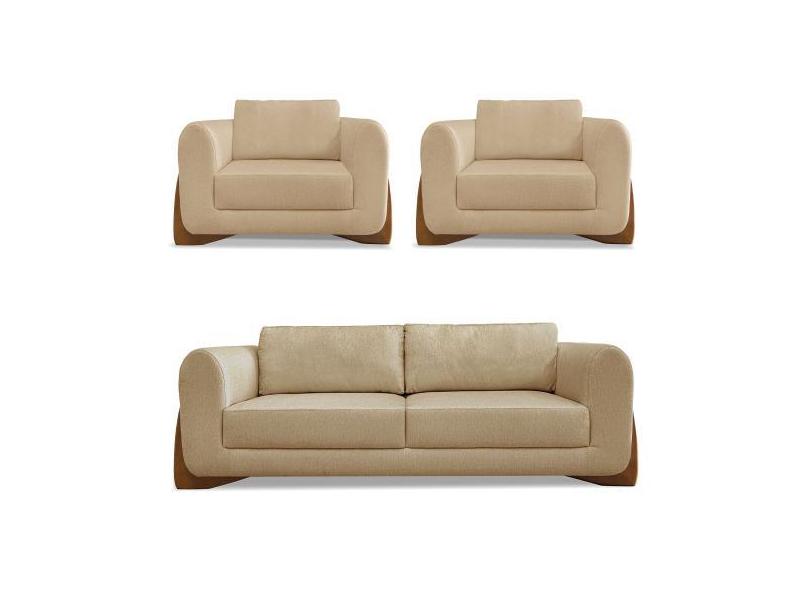 Kit 2 Poltronas e Sofá Living 2 Lugares 1,60m Lottus Linho Dourado Pés
