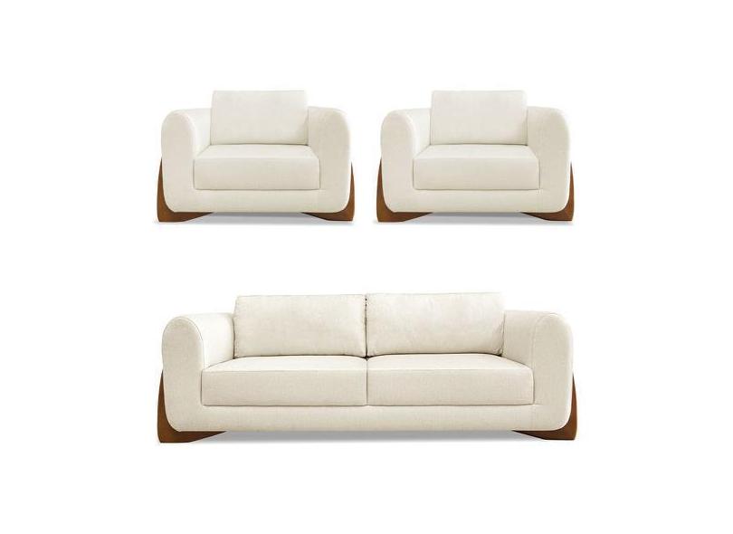 Kit 2 Poltronas E Sofá Living 2 Lugares 1,60M Lottus Linho Natural Pés
