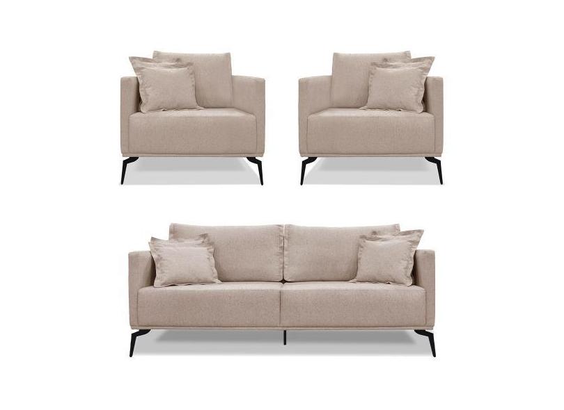 Kit 2 Poltronas e Sofá Living 2 Lugares 1,60m Sirius Linho Areia Pés M