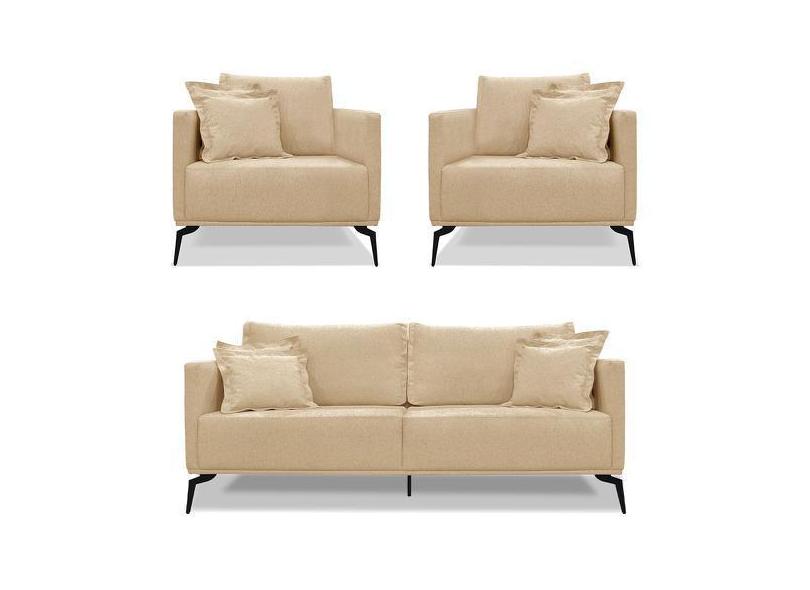 Kit 2 Poltronas E Sofá Living 2 Lugares 1,60M Sirius Linho Pés Metálic