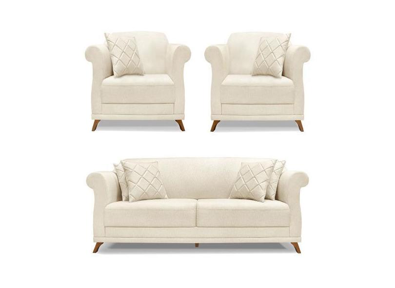 O menor preço encontrado no Brasil para Kit 2 Poltronas e Sofá Living 2 Lugares 1,60m Vênus Linho Pés Castanho atualmente é R$ 6.441,31.