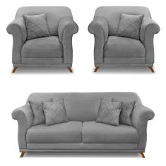 Kit 2 Poltronas E Sofá Living 2 Lugares 1,60M Vênus Veludo Cinza Grafi