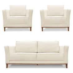 Kit 2 Poltronas e Sofá Living 2 Lugares 1,90m Vega Linho Cas